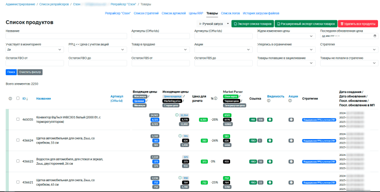 - использовать данные MarketParser как «слой данных» для существующих алгоритмов репрайсинга;