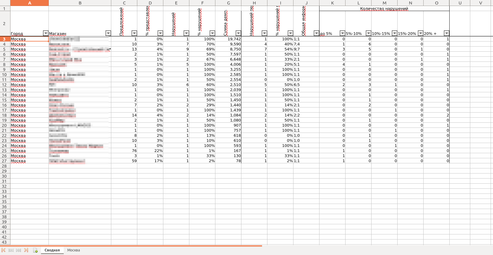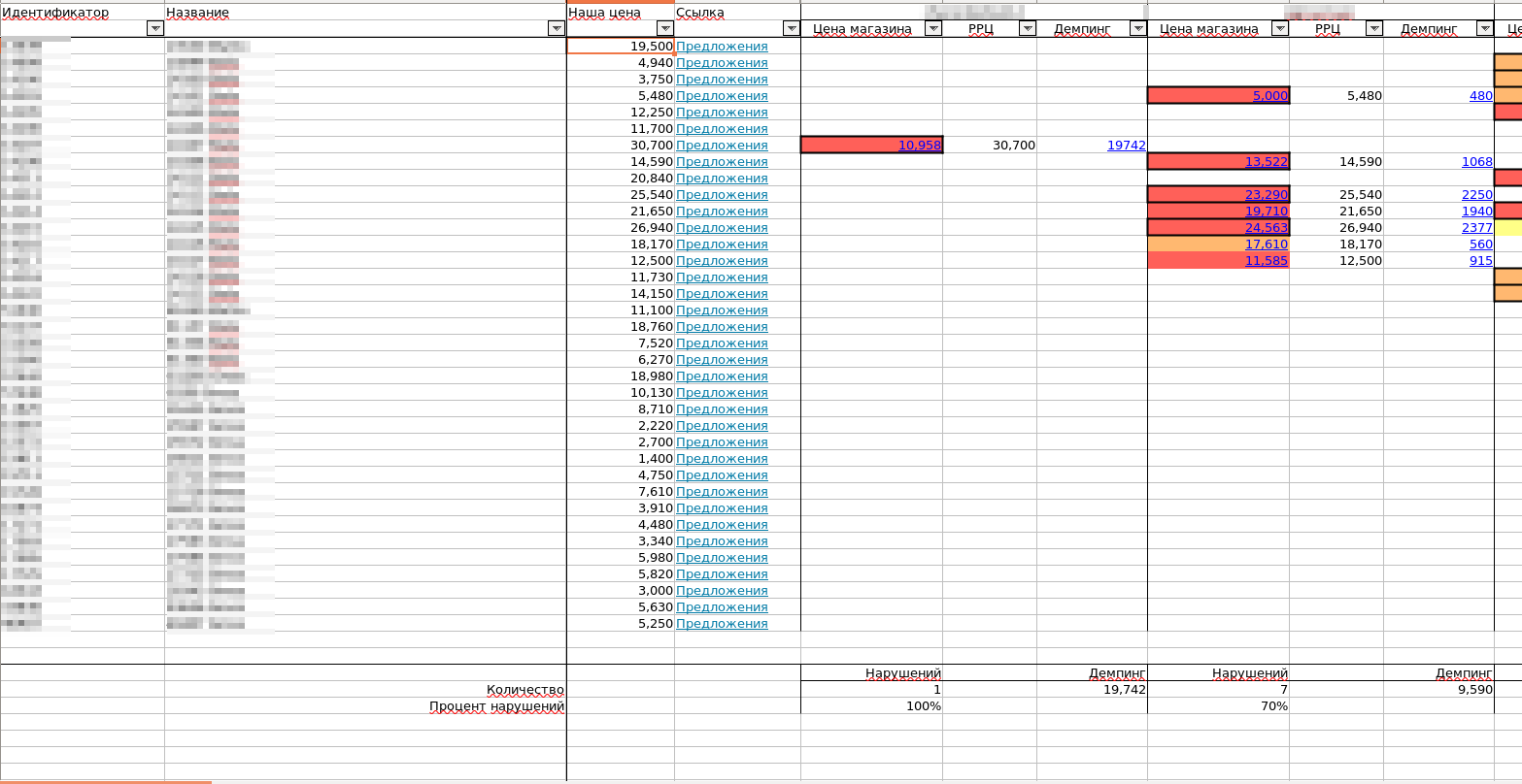 - Анализ выполнения РРЦ на маркетплейсах.